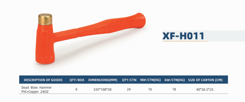 无弹力锤XF-H011是锤子中的一种,也是锤子厂家批发中比较受欢迎的一类,和传统锤子相比,无弹力锤在使用的时候更加安全,不会因为回弹问题而伤害到使用人员。